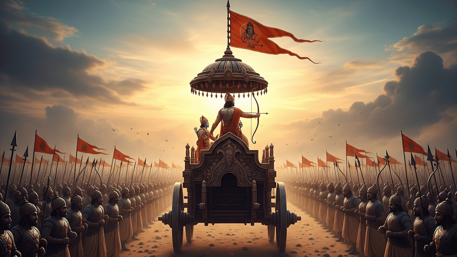 तब, जब कौरवों की सेना युद्ध के लिए व्यवस्थित हो चुकी थी और युद्ध आरंभ होने ही वाला था, तब कपिध्वज (अर्जुन, जिनके रथ के ध्वज पर हनुमान विराजमान हैं) ने अपना धनुष उठाया।