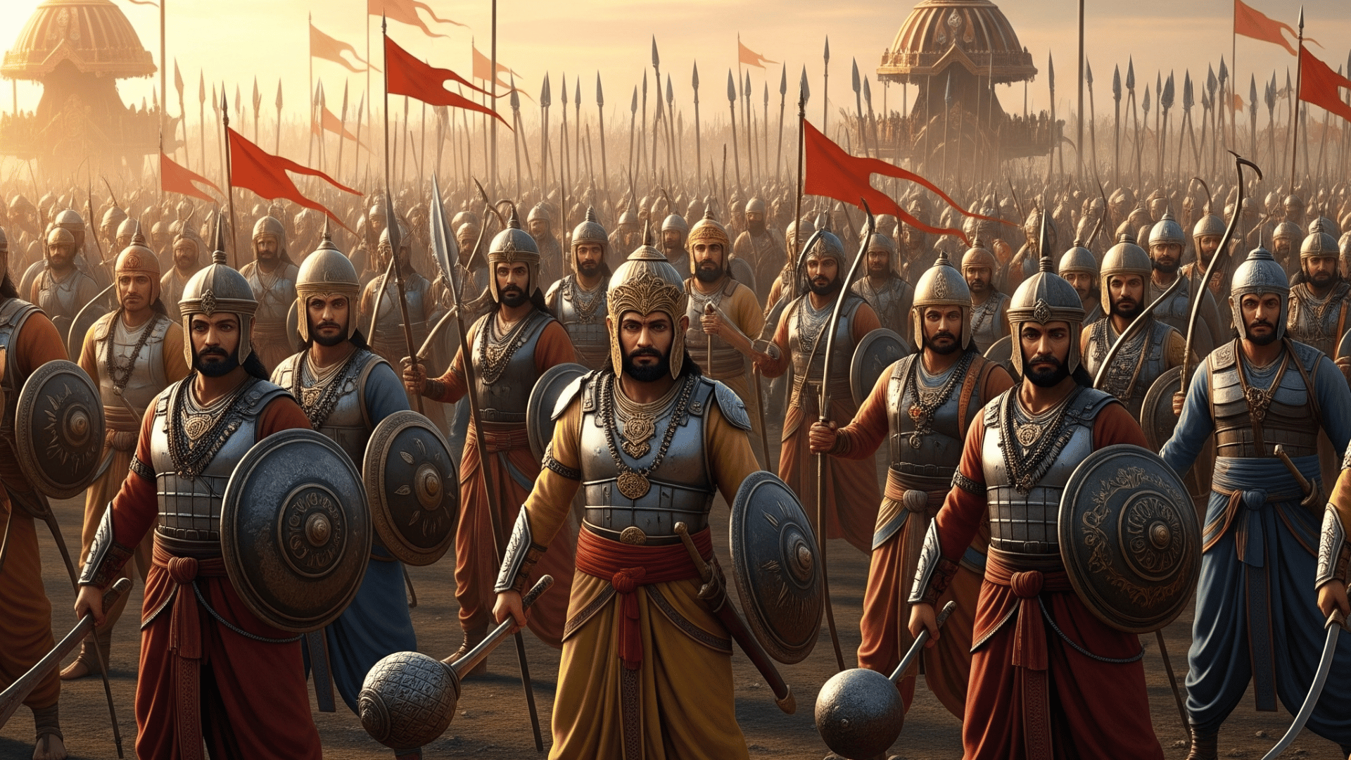 - ये योद्धा विभिन्न प्रकार के अस्त्र-शस्त्रों से लैस हैं, जैसे तलवार, भाला, धनुष-बाण आदि।