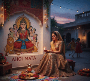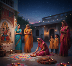 Once upon a time, a moneylender lived in a city. He had seven sons, daughters-in-law and a daughter. A few days before Diwali, his daughter went with her sisters-in-law to collect clean soil from the forest for plastering the house. While collecting soil in the forest, a child of a moneylender died due to a hoe.