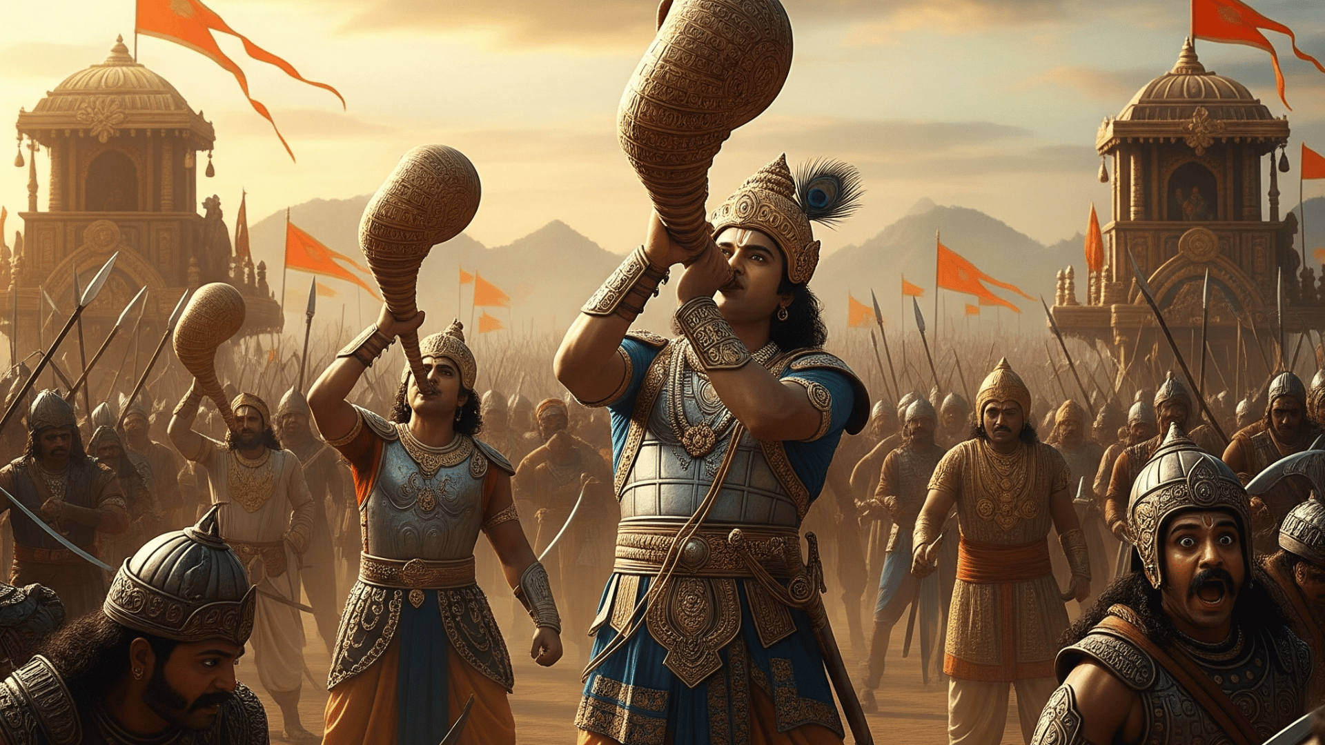 - It shows that the Pandavas’ courage, spiritual strength, and righteousness were so powerful that even the sound of their conch shells weakened the morale of the Kauravas.