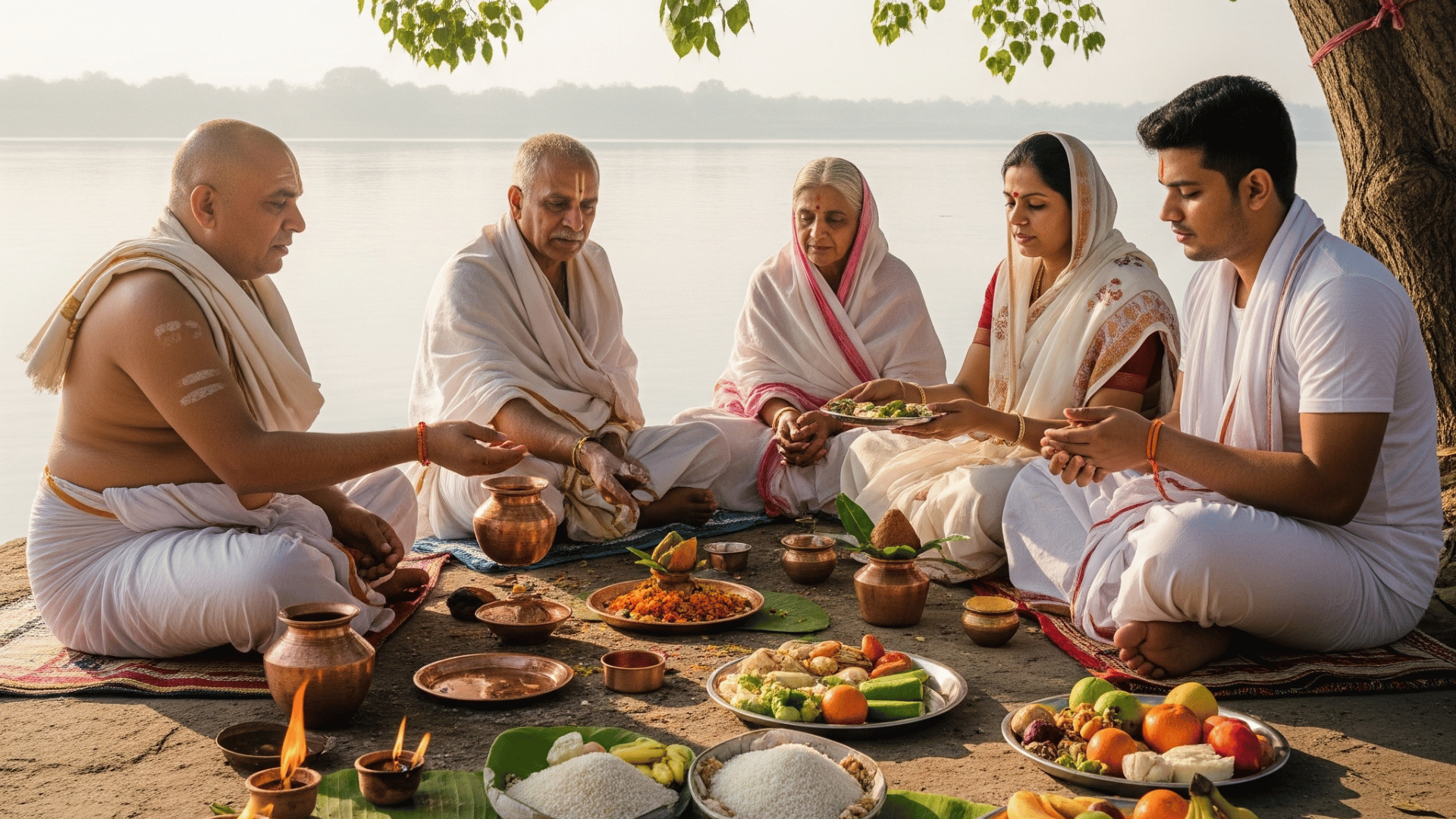 - After completing the rituals, family members eat satvik (pure vegetarian) food.