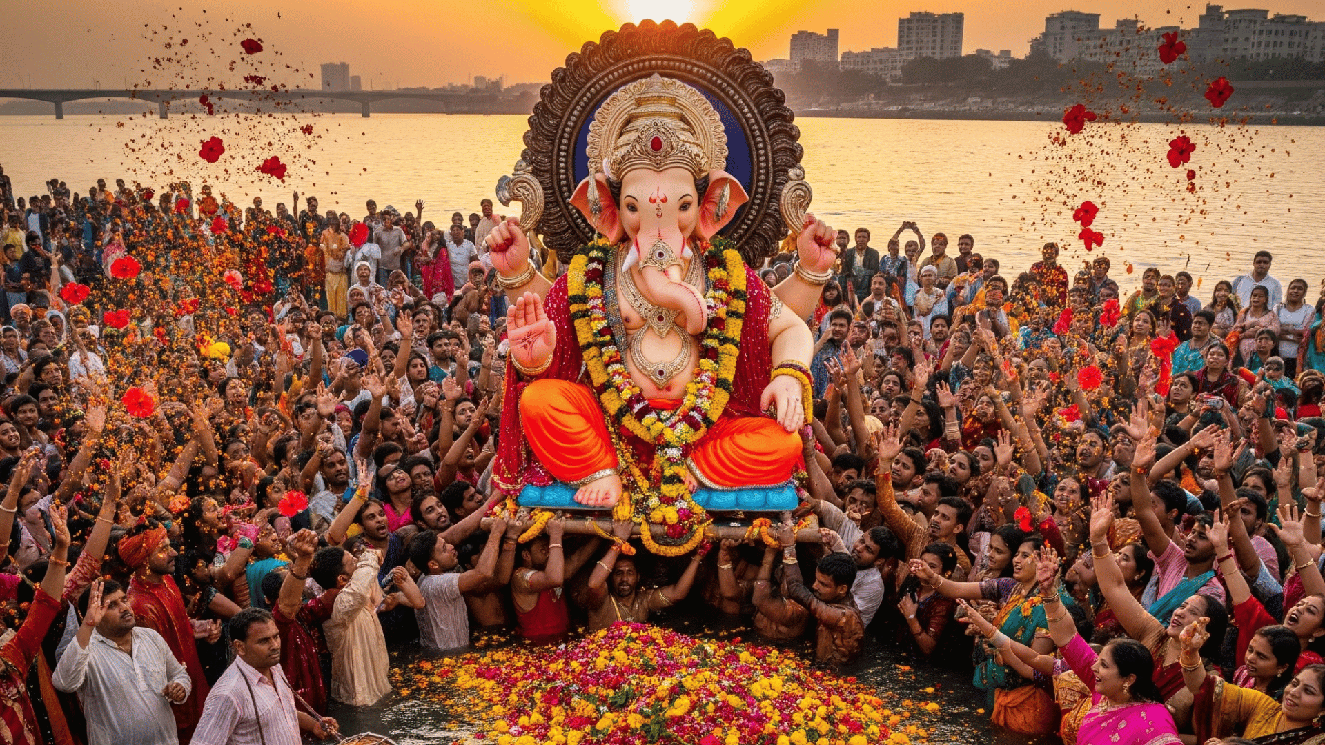 Ganesh Visarjan is a significant religious ritual performed at the end of the Ganesh Chaturthi festival. It involves the immersion of Lord Ganesh idols, who are worshipped as deities of wisdom, prosperity, and good fortune, into water bodies. The Visarjan takes place on the tenth and final day of Ganesh Chaturthi, known as Anant Chaturdashi.