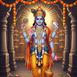 अर्थ – सम्पूर्ण प्राणियों के आदिभूत, पृथ्वी को धारण करने वाले, अनेक रूपधारी और सर्वसमर्थ भगवान विष्णु को प्रणाम है।